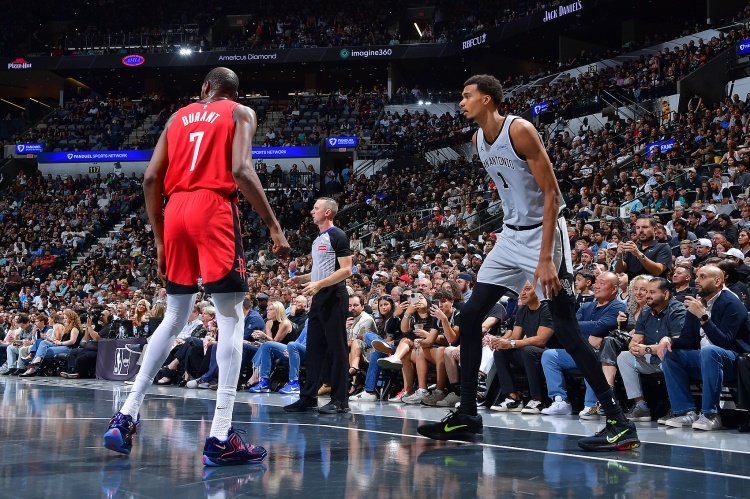 嘿Will,你认为火箭在KD缺阵期间打出了两场防守较好的比赛是巧合吗?他们在进攻端很明显没有那么充满活力,这两场比赛场均得分为109分,但将对手限制在96分。KD在37岁时是一名防守黑洞吗?或者这只是小样本量、受对手影响的干扰数据?——Cecil R. 我不能说杜兰特每晚都是最投入的防守者,但仅仅因为他37岁就称他为负面防守者未免有点极端。 当专注防守时,杜兰特仍然可以成为一名非常具有换防能力的防守者,能够罩住身前的小个子,或者在需要时变身为护筐大闸。 火箭在杜兰特缺阵时提升防守强度并不令人惊讶。每当杜兰特这种级别的球员不得不缺阵时,球队都会比以往任何时候都更倚重自身的特质来弥补损失。火箭本周早些时候在击败太阳和勇士的比赛中所展现出的对抗性和防守心态,正是主教练伊梅·乌度卡希望他的球队骨子里具备的。