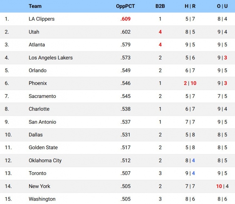 12月赛程难度排名:5连败快船对手胜率最高&火箭