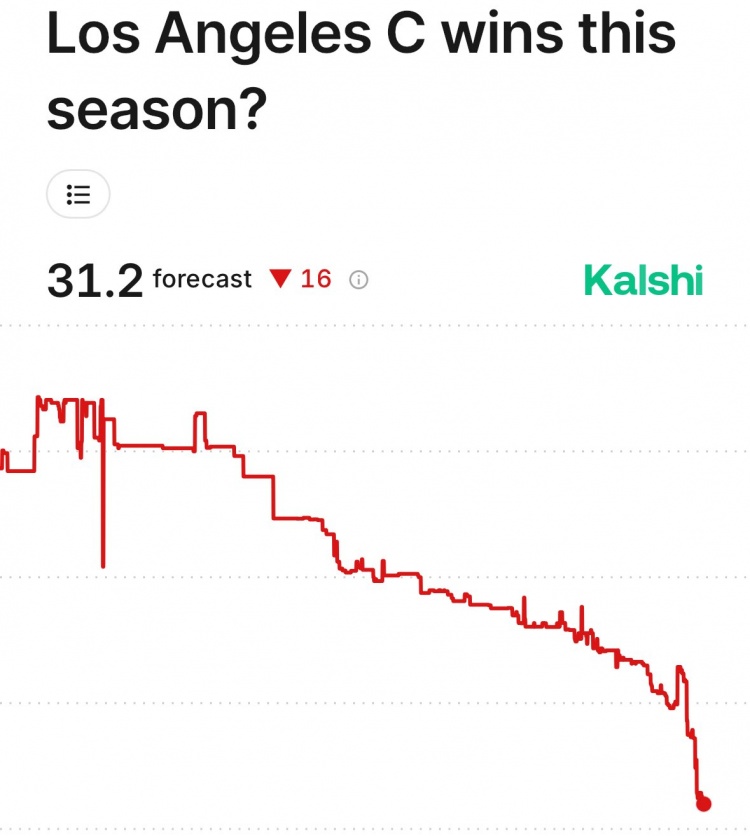 足球比分网12月2日讯 快船本赛季战绩糟糕,目前仅仅5胜16负。 美媒KalshiSports更新了快船本赛季最终胜场预测——31.2胜。 值得一提的是,若保持目前的预测,那么雷霆将获得快船明年首轮前八顺位选秀权。