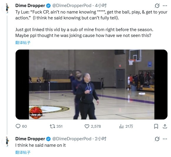 足球比分网12月5日讯 快船自媒体Dime Dropper发推称,快船主帅泰伦·卢曾在训练时隔空怒喷保罗。 该自媒体晒出视频,并写道:“泰伦·卢说‘F**k克里斯·保罗,别跟我提什么名字,拿球,打球,然后开始你的进攻(Fuck CP,ain’t no name knowing *****,get the ball, play & get to your action)’。” 该自媒体补充说道:“我觉得他说的是‘认识’,但不太确定(I think he said knowing but can't fully tell)。赛季开始前,我的一个粉丝给我发了这个视频链接。可能大家都以为他在开玩笑,不然怎么会没人看过呢?” 随后,该自媒体在评论区补充道:“我觉得他直接点了名字(I think he said name on it)。”