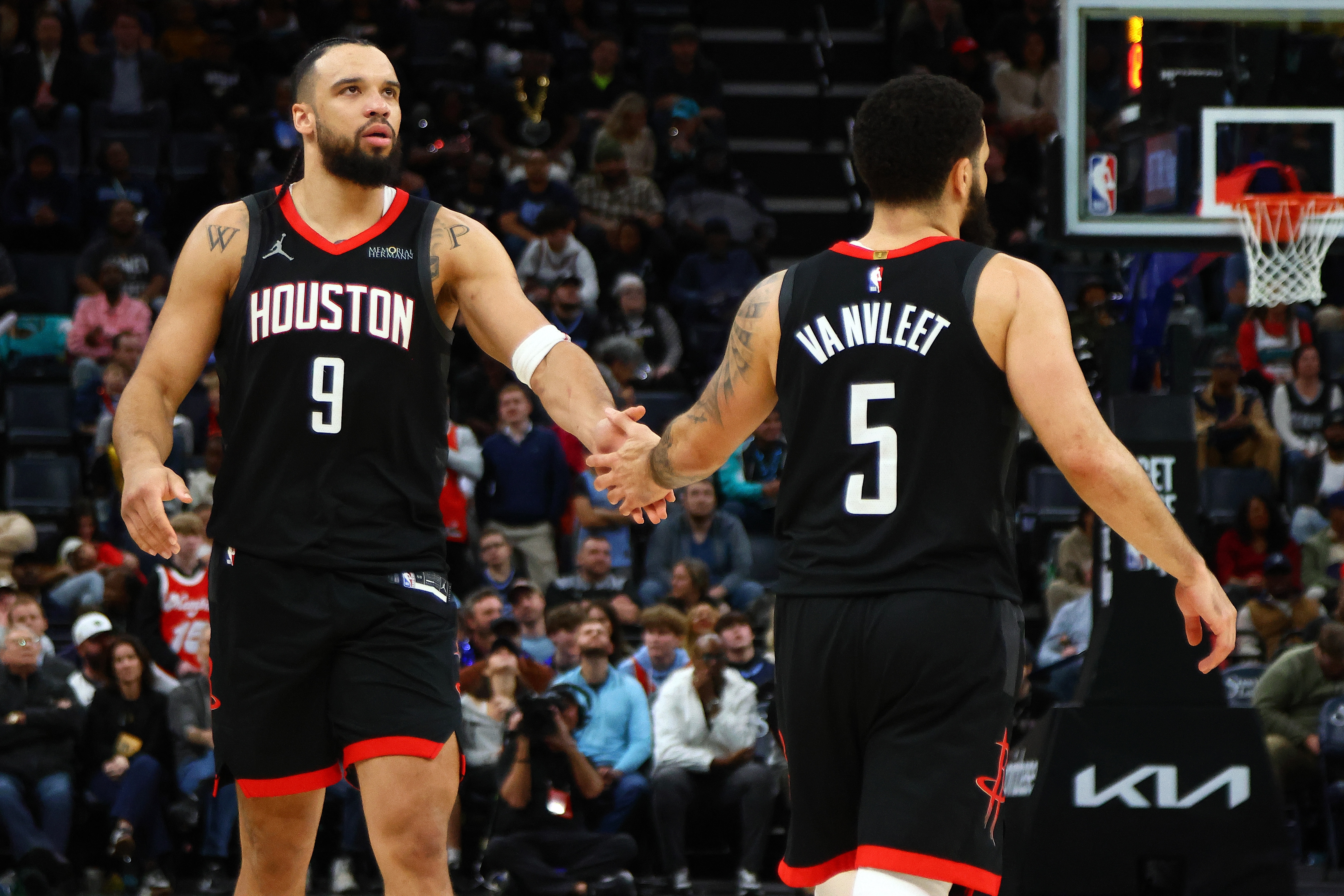 足球比分网12月6日讯 NBA常规赛,火箭对阵太阳。 在比赛中,狄龙和在替补席上的范弗里特互动,后者说道:“40分,你有得过40分吗?让我见识一次,让我们看看。”