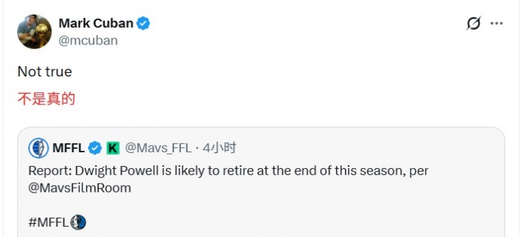 德怀特·鲍威尔本赛季结束后退役?库班在线辟谣