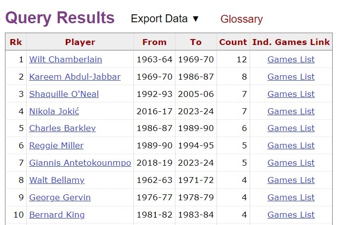 约基奇8次以至少85%命中率砍30+ 超鲨鱼居NBA历史第