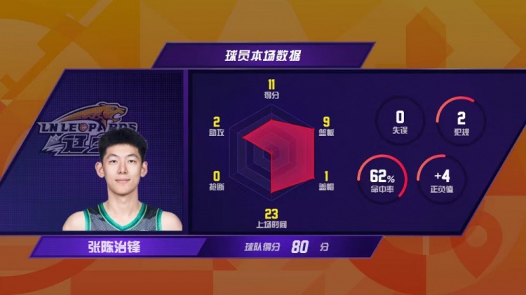 2025-2026赛季是辽宁本钢内线核心韩德君退役后的第一个赛季,首轮比赛,辽宁本钢另一内线李晓旭缺阵,星锐球员张陈治锋站了出来,打出了职业生涯的最好表现。本场比赛,张陈治锋出场23分钟, 11分9篮板2助攻,从出场时间到三项主要数据均为生涯最高,其中包含5个进攻篮板,这一数据并列本轮联赛第三位。杨鸣指导在赛后发布会上特别提到了篮板球的拼抢,他表示新赛季辽宁队需要在防守、篮板球和比赛态度方面打下基础。而张陈治锋也正在用自己的努力,为球队贡献自己的能量。