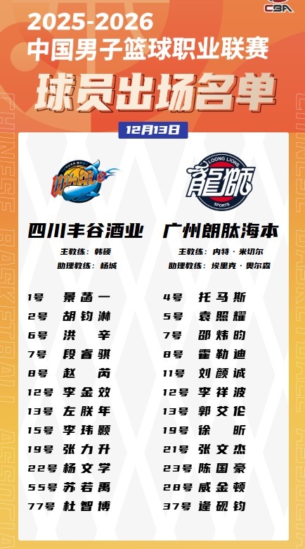 四川VS广州揭幕战大名单:前者全华班 后者由郭