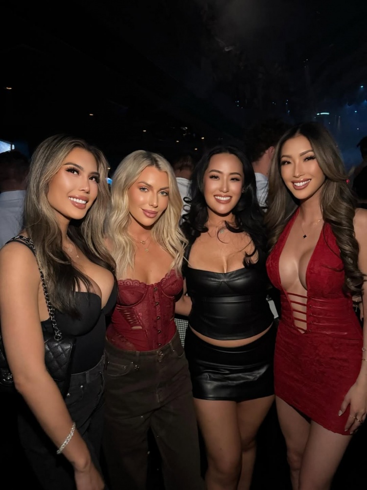 身材性感火辣!网红模特Monica携众姐妹观战NBA杯