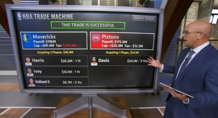 足球比分网12月10日讯 据Shams此前报道,浓眉预计将成为多支球队的重要交易目标,包括活塞、老鹰和猛龙。 ESPN薪资专家Bobby Marks据此报道进行模拟交易,浓眉奔赴活塞,独行侠得到托...