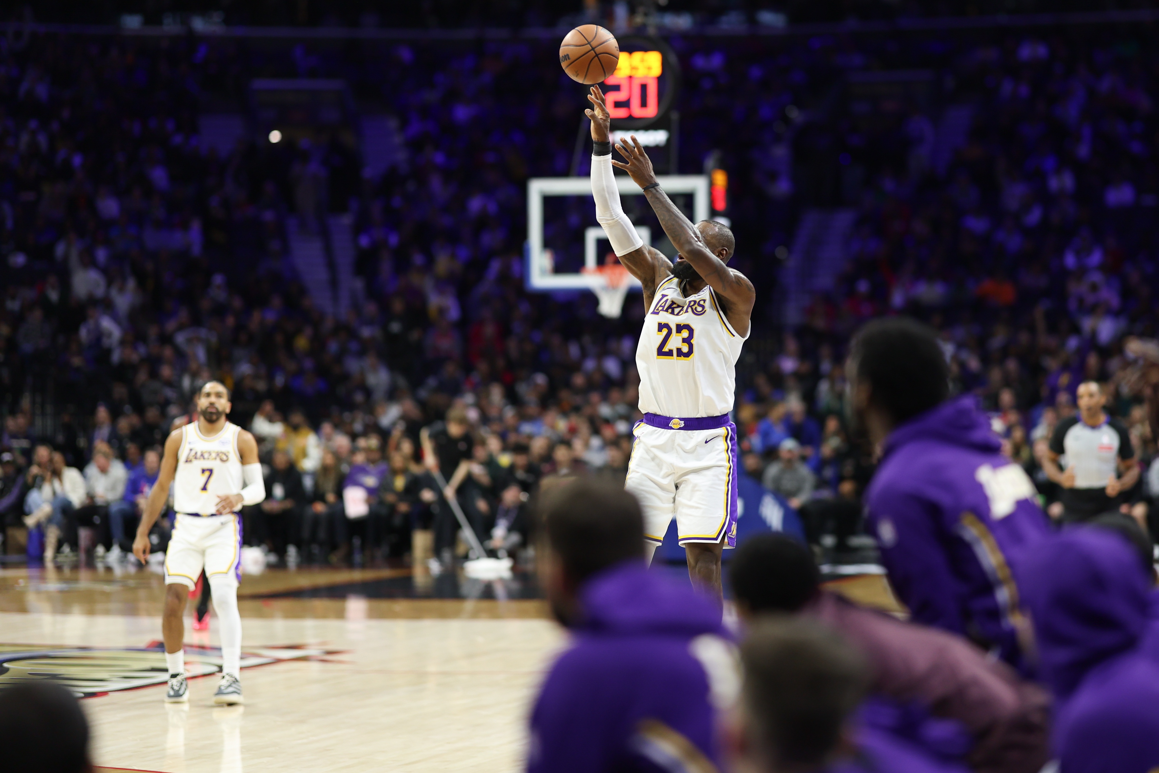 足球比分网12月09日讯 76人后卫“魔仙哥”麦凯恩7小时前更新了自己的油管,晒出了自己对战湖人前后的Vlog。 他的标题很有趣:“我跟老布朗尼(指勒布朗·詹姆斯)和卢卡·东契奇打...