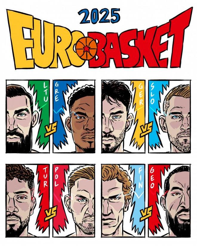 直播吧9月8日讯 2025男篮欧锦赛已经结束1/8决赛的争夺,8强球队已经全部出炉。 今天,欧锦赛官推晒出了8强对阵的海报,预热1/4决赛。 明天晚上10点,土耳其对阵波兰的比赛将率先开打...