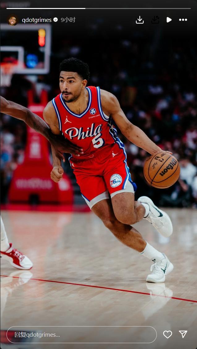 直播吧09月09日讯 76人记者Kyle Neubeck报道,格莱姆斯Instagram更新了动态。 格莱姆斯在9个小时前突然在Instagram更新了一则动态,晒出了一张自己上赛季身穿76人球衣的赛场照。 今年休赛期...