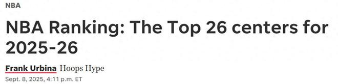 火箭队申京高居第4名!继控卫、分卫、小前与大前锋之后,美媒《hoopshype》又适时公布了新赛季中锋TOP26名单,其中湖人队新援艾顿压线入选。 第五名: 恩比德 24-25赛季:23.8分8.2篮板...