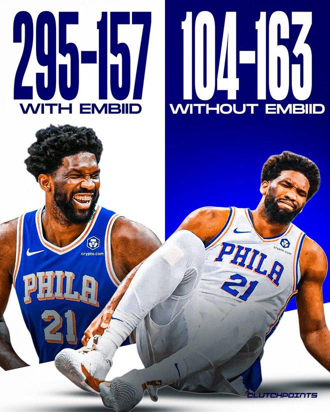雷速体育8月26日讯 美媒ClutchPoints列出了自恩比德进入联盟以来,76人有他和没他时的战绩对比。 详情如下: 恩比德出战时76人295胜157负 恩比德缺席时76人104胜163负 ClutchPoints写道:“一...