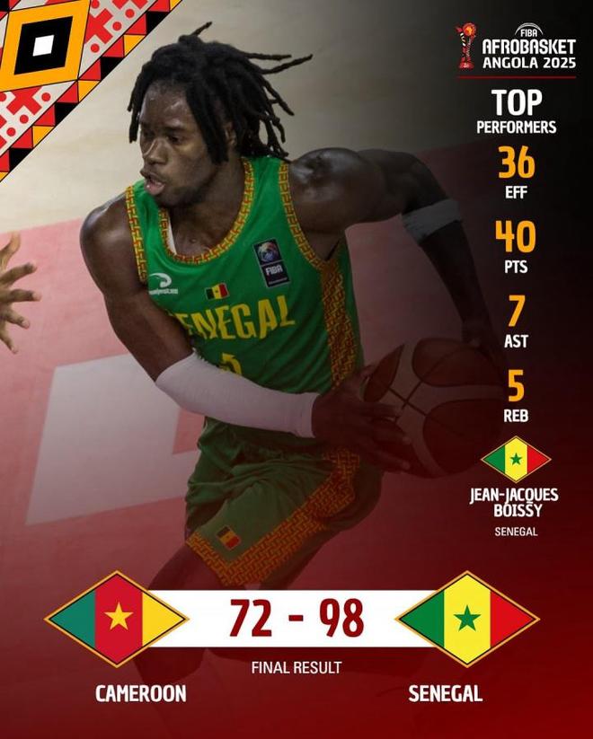 塞内加尔悍将布瓦西 直播吧08月25日讯 2025年男篮非锦赛季军战, 塞内加尔 以98-72大胜喀麦隆,拿到第三名。 此役,塞内加尔后卫布瓦西大发神威,他登场35分钟27投15中,三分16中8、罚...