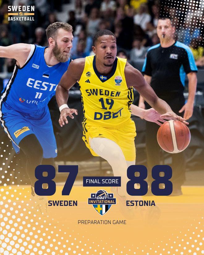 雷速体育8月21日讯 男篮欧洲杯前热身赛继续进行,瑞典87-88惜败爱沙尼亚,遭遇4连败。 本场比赛,两队在首节打成21平,爱沙尼亚在第二节拉开8分分差。下半场,瑞典一直紧咬比分,...