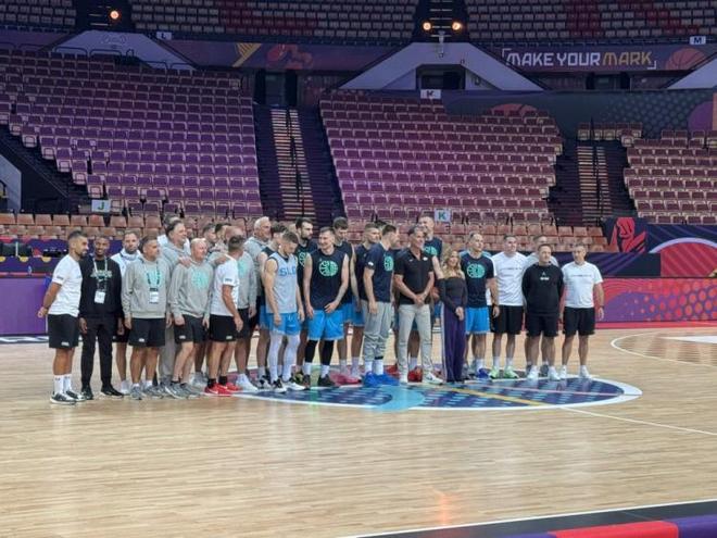 直播吧8月28日讯 斯洛文尼亚男篮将在北京时间8月29日凌晨迎来他们的欧锦赛首场比赛,对手是波兰男篮。 在今天的赛前训练中,球队迎来了两位特别的人物——湖人总经理佩林卡和珍...