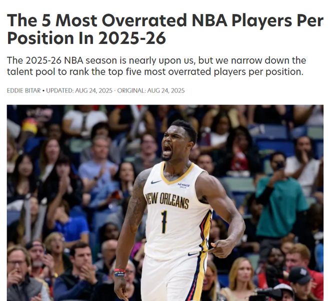 近日,美国媒体FW评选了25-26赛季联盟五个位置上最可能被高估的球员前五名单,海报就是鹈鹕队的锡安-威廉森,湖人先发中锋德安德烈-艾顿则是C排名中的第一,湖人SG 里夫斯 也在里...