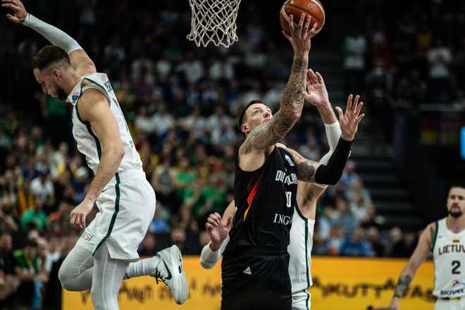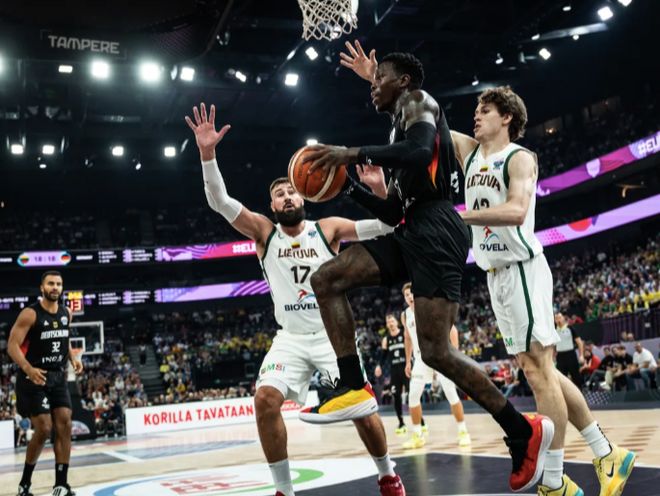 男篮欧洲杯小组赛,B组迎来一场强强对话,德国男篮对阵立陶宛。两支球队都取得了2连胜,这次上来德国男篮早早进入状态,内外开花占据场上主动,可在之后立陶宛也是不断追分,...