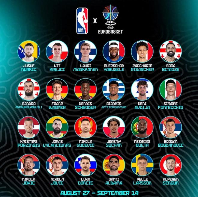 雷速体育8月27日讯 今日晚间,欧洲杯小组赛就将正式打响。本届欧洲杯首次扩军至24支球队,由波兰、芬兰、拉脱维亚、塞浦路斯四国联合承办小组赛。本届赛事吸引了24名NBA现役球员...