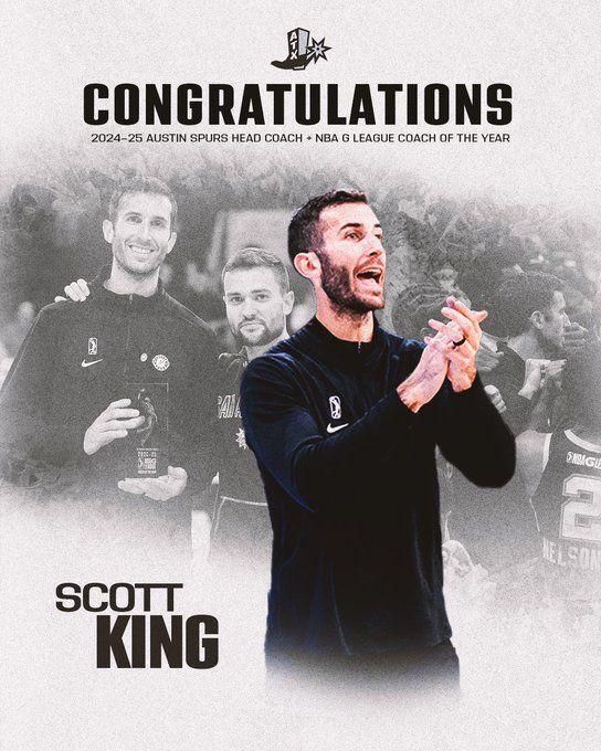 雷速体育8月19日讯 根据名记Michael Scotto报道,马刺已经把G联赛最佳教练斯科特·金升级为了球队助理教练。 斯科特·金率领奥斯汀马刺队取得了G联盟最高防守效率(102.3)并创下了G联盟...