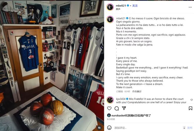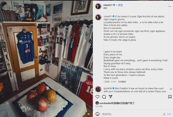 兄弟们,还记得贝里内利吗?他正式退役了。 近日,贝里内利在社交媒体上晒图,官宣自己的篮球生涯结束,他写道:“篮球给了我一切,而我也全力以赴,告别并不容易,但时候到了...