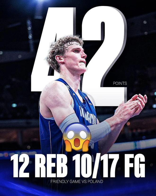 马尔卡宁,又杀疯了。 男篮欧洲杯热身赛,芬兰以97-88战胜波兰,这场马尔卡宁又一次打出炸裂表现: 全场出战24分钟,投篮17中10,三分7中3,罚球20中19,拿下42分12篮板3盖帽1抢断,正...