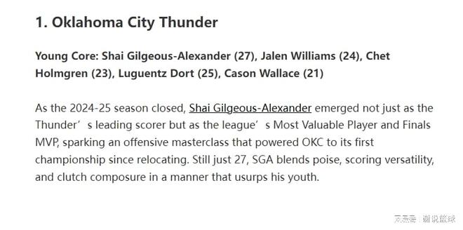 正所谓长江后浪推前浪,在詹姆斯、杜兰特、库里和哈登等人老去情况下,未来总要让后辈扛大旗。而如果一支球队,整体阵容框架非常年轻,自然就具备一切可能性,在未来很多年保...