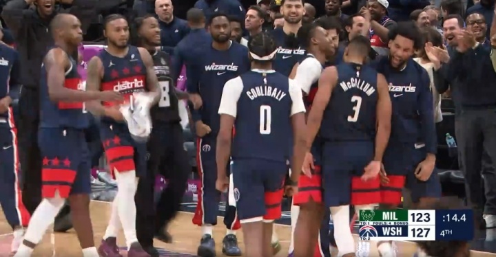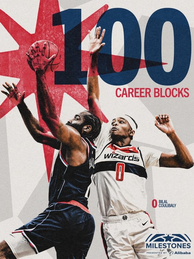 足球比分网12月2日讯 奇才主场迎战雄鹿,小将库利巴利封盖字母哥,送出生涯第100个盖帽。 奇才官方发布100帽海报,图片却是库利巴利帽哈登的瞬间。...