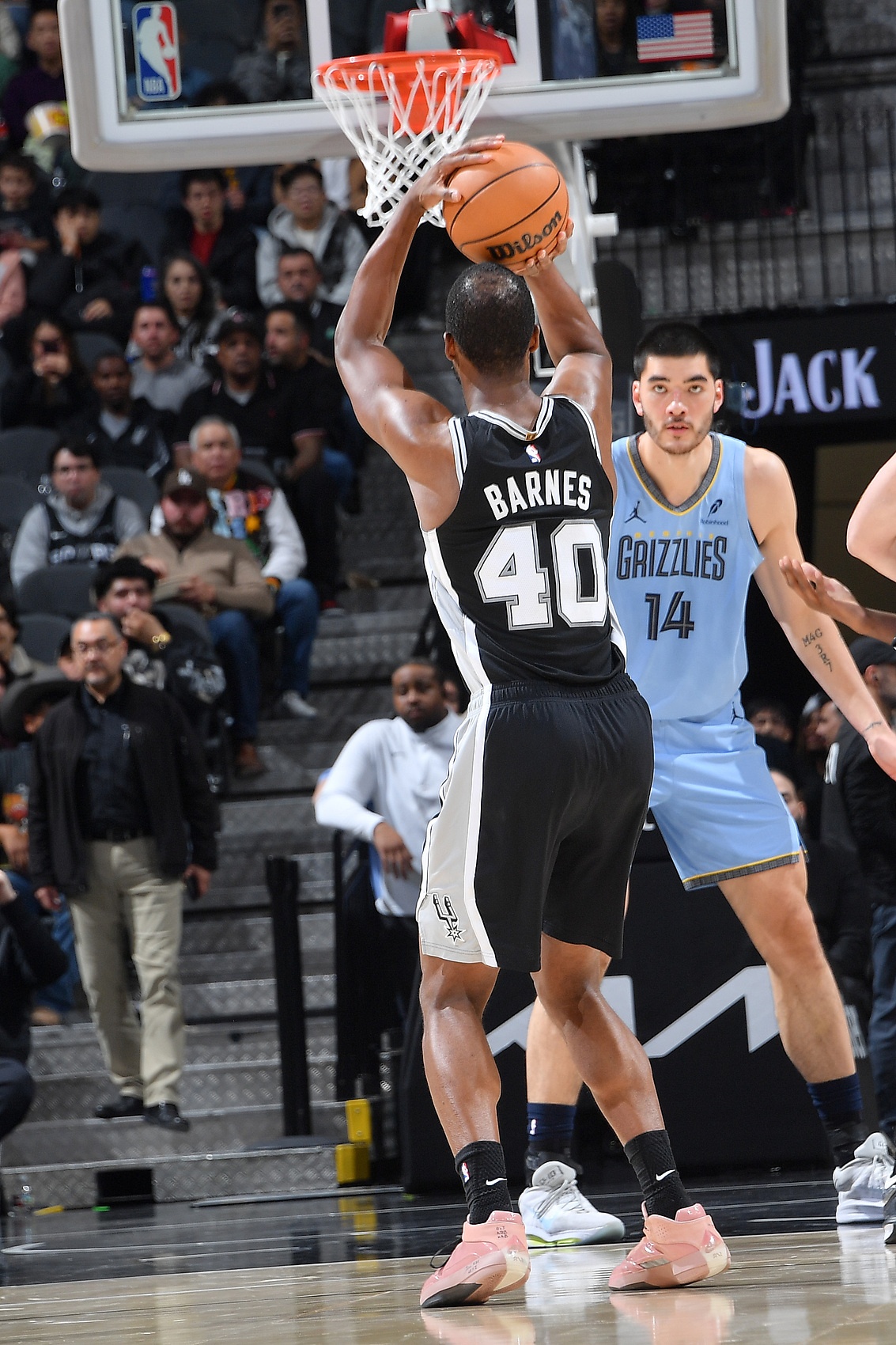 足球比分网12月3日讯 NBA常规赛,马刺半场63-59领先灰熊。 上半场,马刺前锋哈里森·巴恩斯手感火热,打了17分钟8投5中,三分6中4、罚球4中3砍半场最高17分外加1篮板3助攻,正负值+7。...