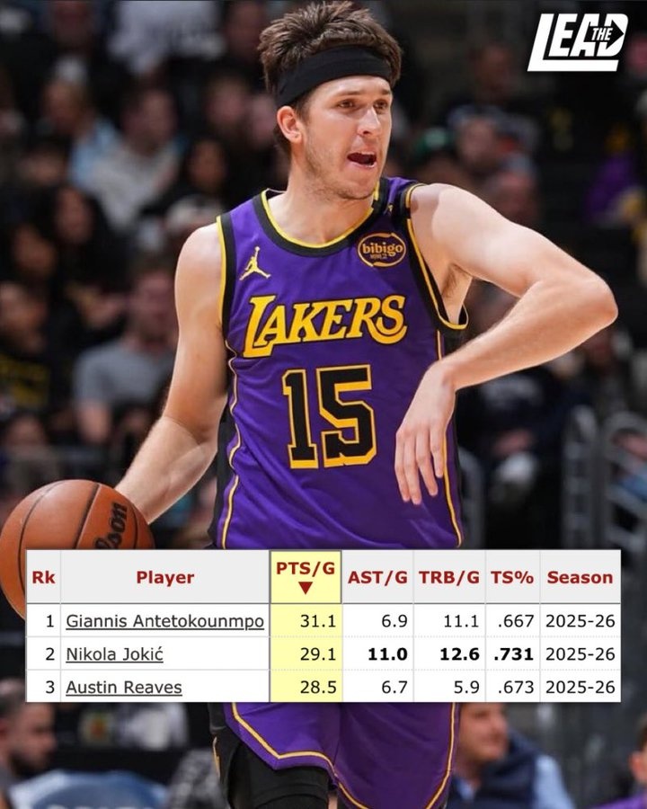 足球比分网11月30日讯 美国数据媒体The Lead分享了一个数据,赛季至今只有三名球员能场均28+5+5且真实命中率65+%。 约基奇:29.1分12.6板11助,真实命中率73.1% 字母哥:31.1分11.1板6.9助,真...