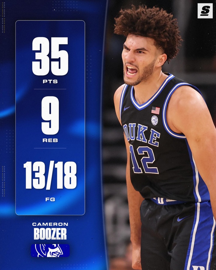 足球比分网11月28日讯 在刚刚结束的一场NCAA比赛中,杜克大学80-71击败阿肯色大学。 卡梅隆·布泽尔出场36分钟,18投13中,三分4中2,罚球11中7,拿到了35分9篮板3助攻2抢断。 卡梅隆的兄...