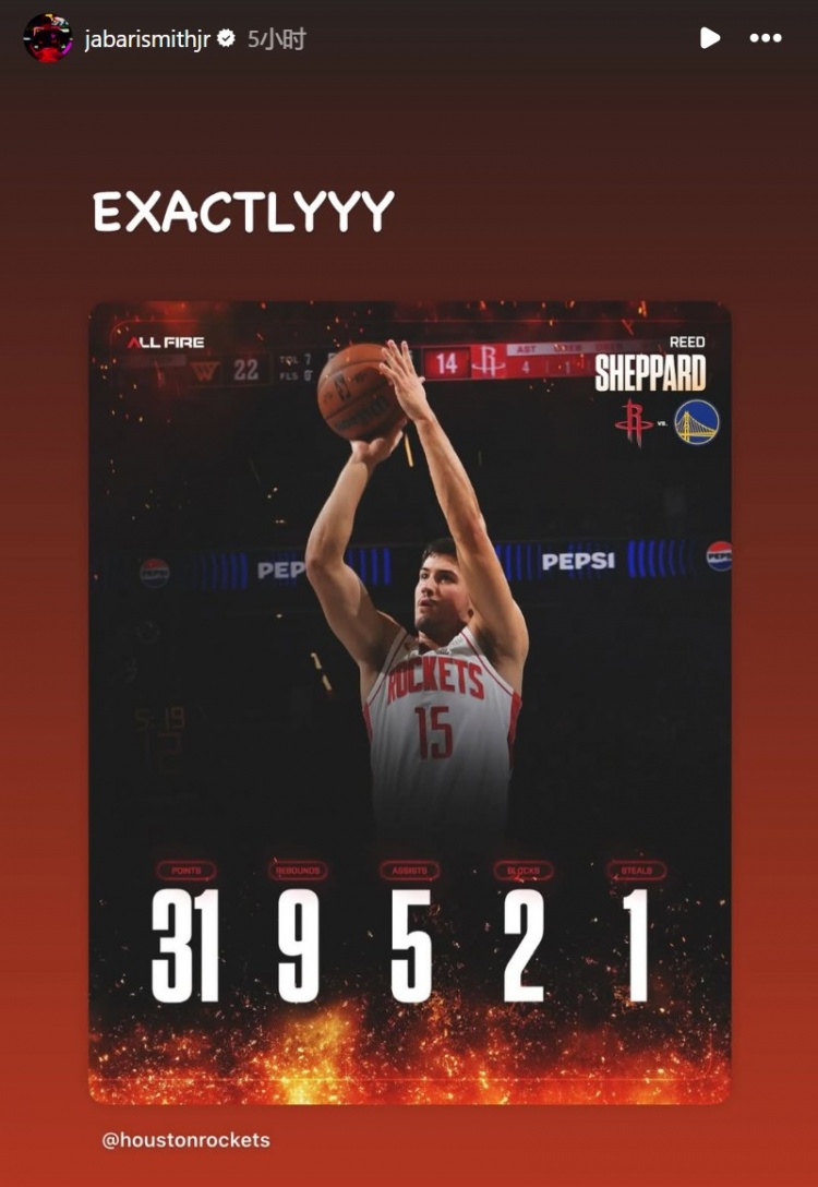 足球比分网11月27日讯 NBA杯C组小组赛,火箭104-100逆转勇士。 谢泼德全场比赛出战38分钟,24投12中,三分球12中4,4罚3中砍下了职业生涯新高的31分外加9板5助1断2帽。 赛后,火箭官方为...