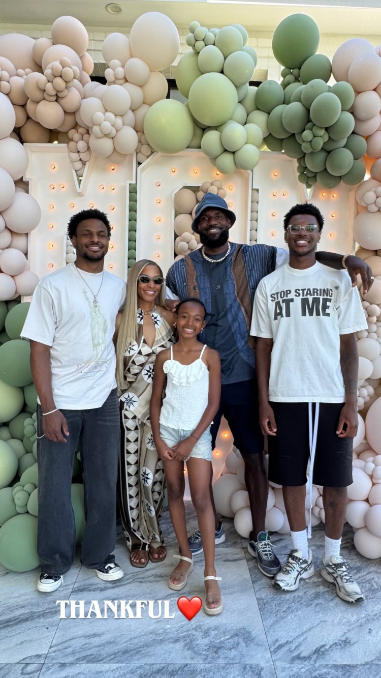 足球比分网11月28日讯 今日是西方传统节日感恩节。 湖人前锋詹姆斯的小儿子布莱斯更新Instagram Story,晒出一张詹姆斯全家五口人的合影,并写道:“感恩❤️”...