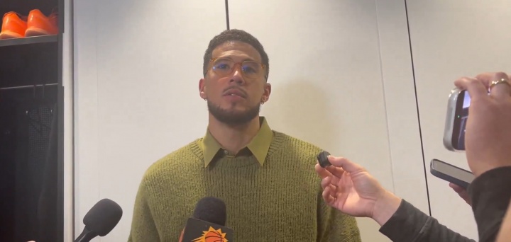 足球比分网12月15日讯 NBA常规赛,太阳主场114-116惜败湖人。 赛后,布克接受采访时谈到了自己对詹姆斯的关键三分犯规。 记者表示他看到布克在那个判罚后与裁判聊了会儿,布克则是...