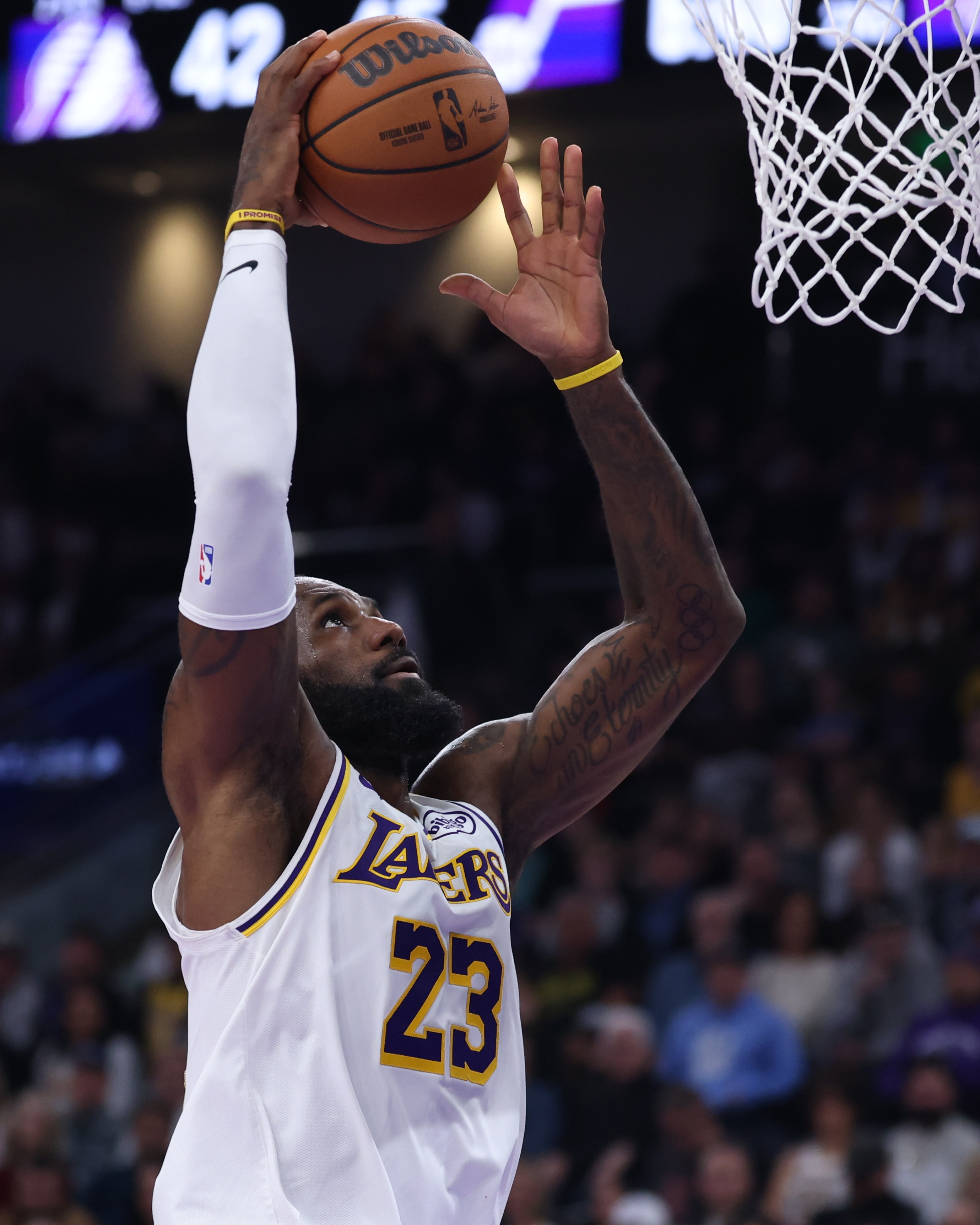 足球比分网11月24日讯 NBA常规赛,湖人108-106击败爵士。 赛后,詹姆斯接受了记者采访。他表示不担心湖人赛季初的投篮低迷,并认为球队正在创造好的出手机会。他说道:“我不担心这...