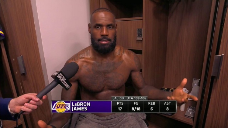 足球比分网11月24日讯 今日,湖人108-106客场击败爵士,迎来四连胜。赛后,湖人前锋詹姆斯接受了采访。 当被问到在经历连续四天的休息过后,如何应对本周更为常规的赛程,詹姆斯说...