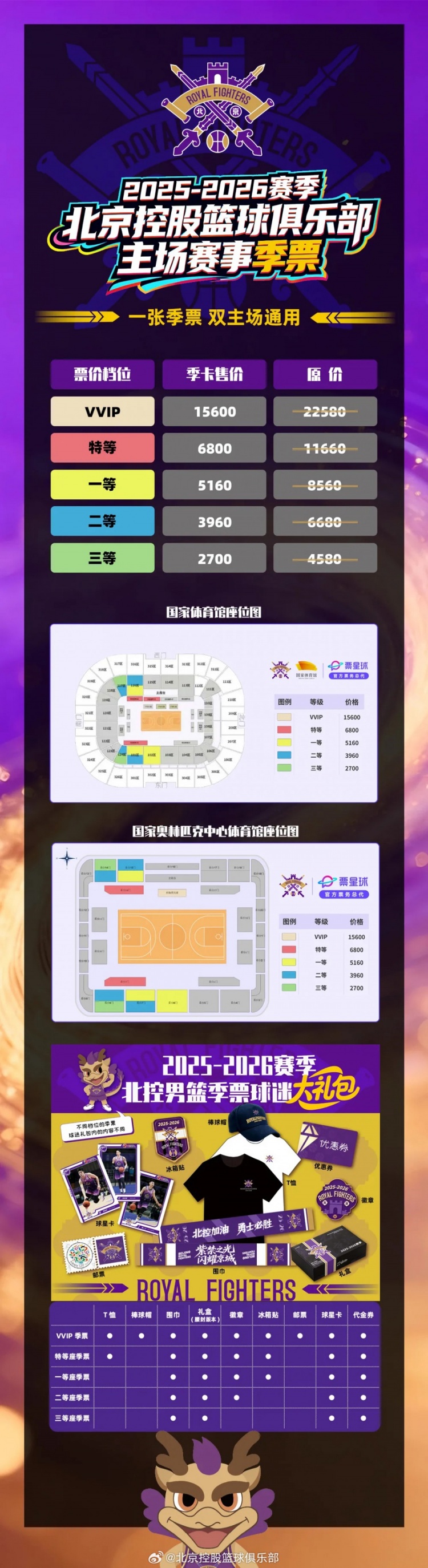 【票务公告】双主场通用|2025-2026赛季季票即将发售!快来解锁你的专属席位! 2025-2026赛季季票为一卡通季票,即购买一张季票即可通看奥体中心体育馆、国家体育馆共计21场的北控主场...