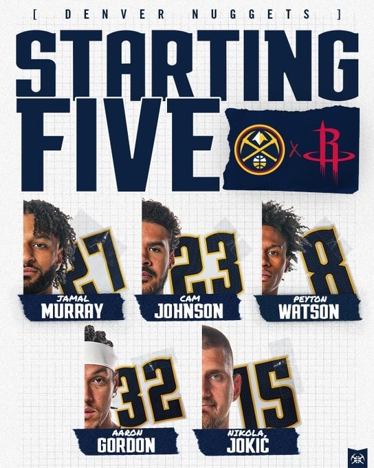 足球比分网11月22日讯 NBA杯掘金主场迎战火箭,赛前掘金首发出炉: 穆雷、卡梅隆·约翰逊、沃特森、戈登、约基奇 早前火箭首发出炉,继续五大阵容:阿门、杜兰特、贾巴里·史密斯...