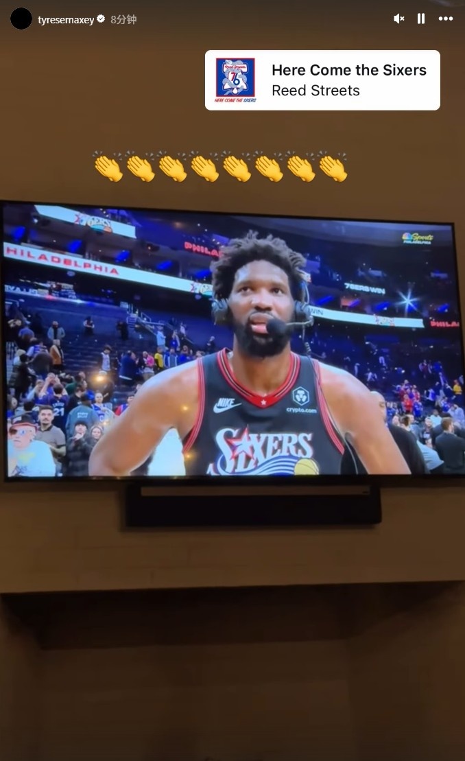 足球比分网12月13日讯 NBA常规赛,76人主场115-105战胜步行者。 因病缺席比赛的马克西在社媒上发布了在家看比赛的照片,照片中恩比德接受赛后采访,马克西配上了8个鼓掌的表情。 本...
