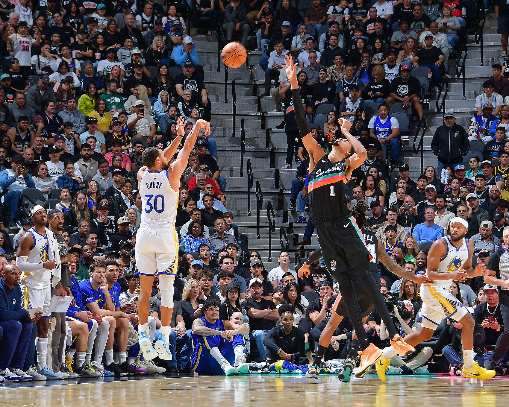 足球比分网11月20日讯 NBA常规赛,勇士96-110不敌热火。 赛后,追梦和维金斯寒暄,库里也和阿德巴约聊聊。...