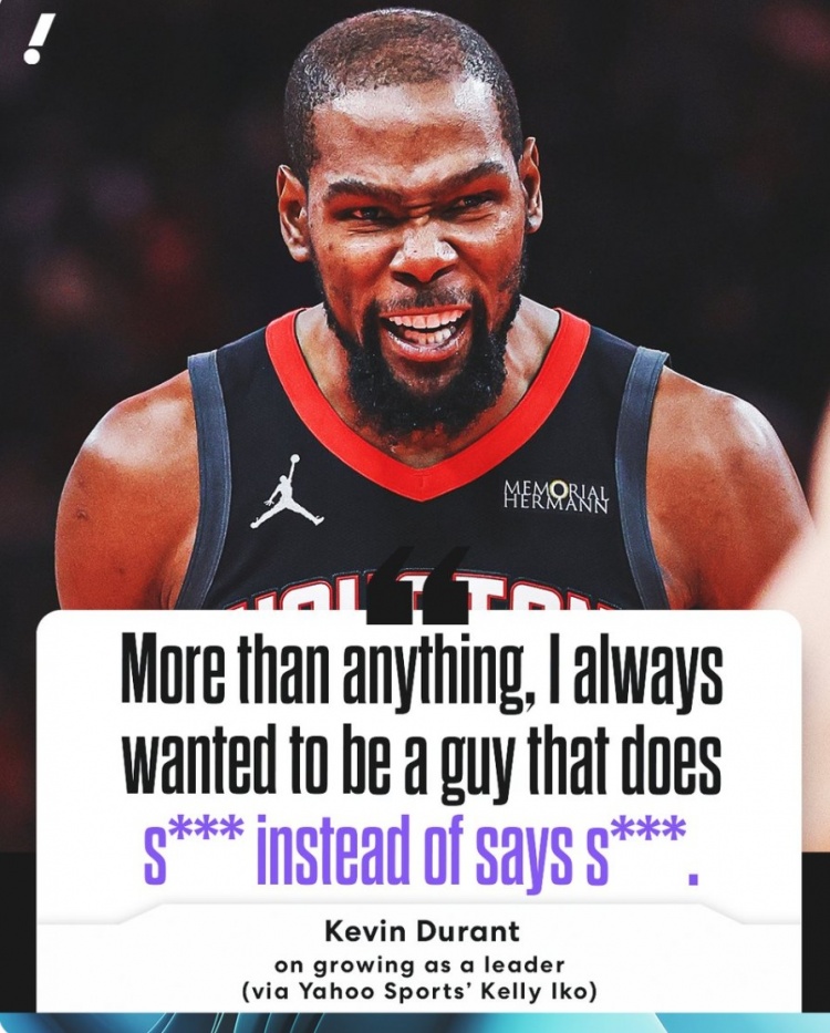 足球比分网11月20日讯 近日,火箭球星凯文·杜兰特接受了队记Kelly Iko的采访。 谈到自己作为一个领导者的进步,杜兰特说道:“我一直以来更希望成为一个行动派,而不是空谈者。你...