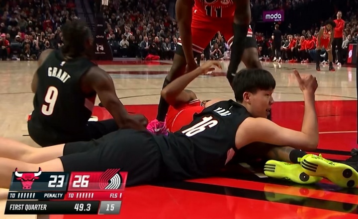 足球比分网11月20日讯 NBA常规赛,开拓者主场迎战公牛。 首节比赛中,杨瀚森背打杰伦·史密斯,大秀梦幻脚步轻松打进。 NBA官方转发并写道:“运球逐渐给力量、利用脚步,然后用左...