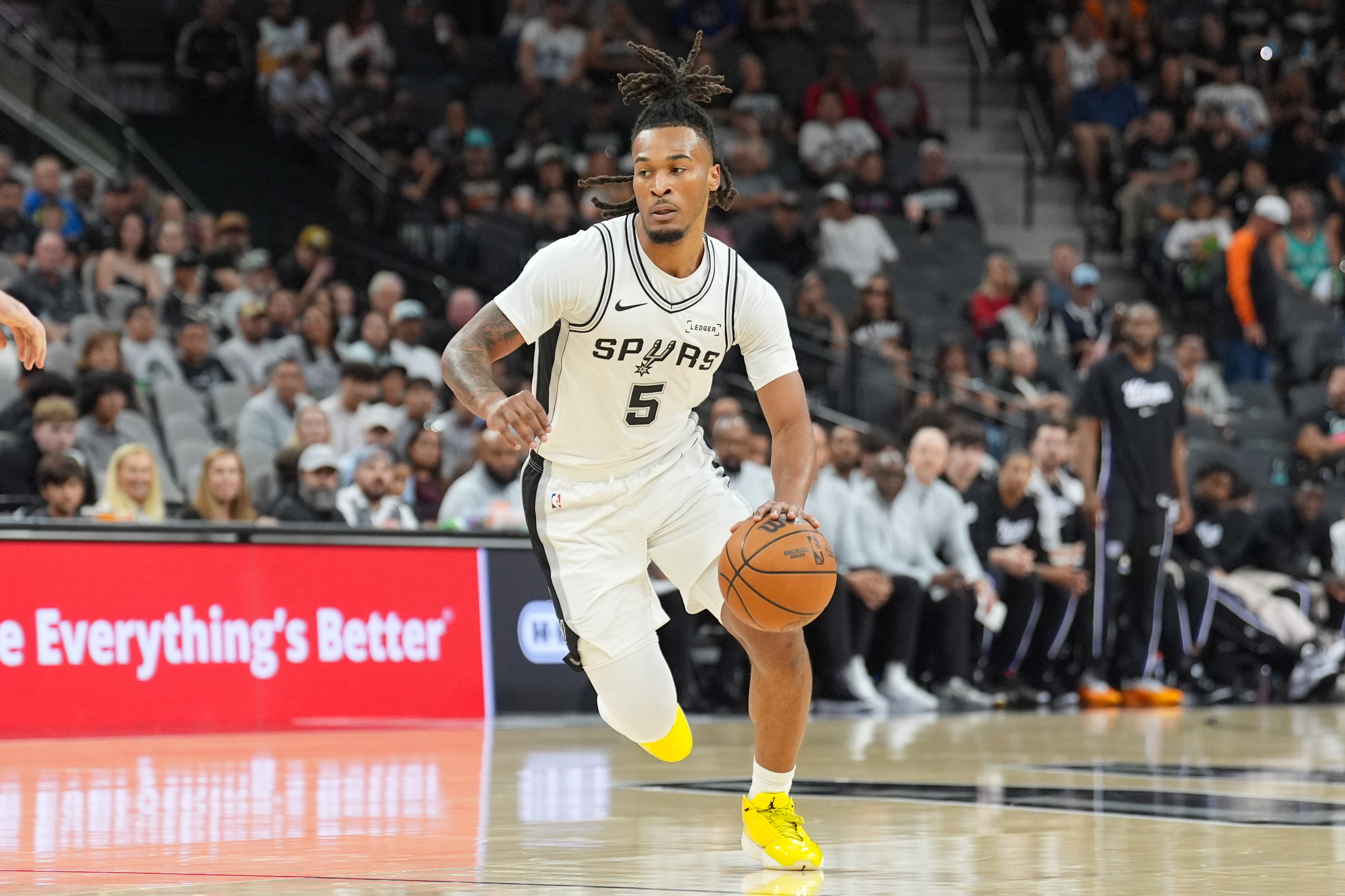 足球比分网12月11日讯 NBA杯1/4决赛,马刺132-119战胜湖人晋级。 赛后,马刺主帅米奇·约翰逊谈到凯尔登·约翰逊时,盛赞道:“我们球队能人众多,也有文班这种基石球员,但凯尔登才...