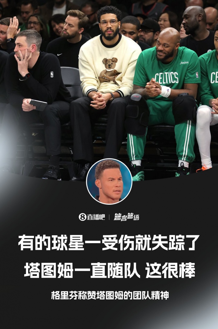 格里芬近日接受了媒体ClutchPoints的采访,期间他谈到了还处在跟腱伤势康复过程的前队友塔图姆。 格里芬称赞塔图姆说:“有一些球星,受伤了之后就找不到人了,而他一直跟着球队、...