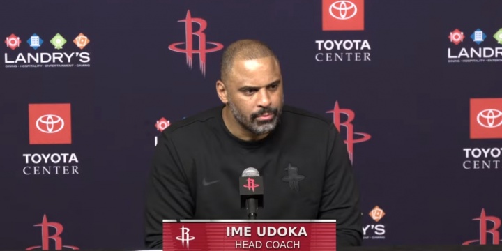 足球比分网12月12日讯 NBA常规赛,火箭115-113击败快船,赛后,火箭主教练乌度卡出席新闻发布会,接受记者的采访。 在被问到如何看待球队今天在限制哈登上罚球线方面的表现时(哈登...