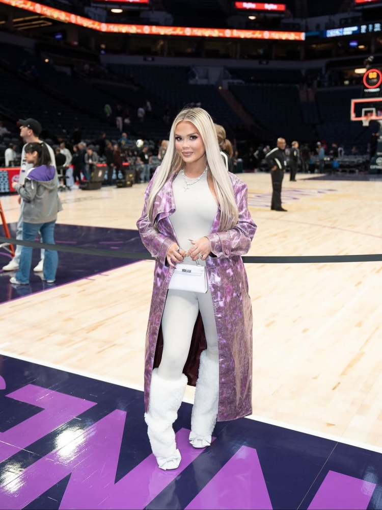 足球比分网12月9日讯 森林狼球星朱利叶斯-兰德尔的妻子Kendra在社交媒体上晒出了自己在主场看球的照片,带娃为丈夫加油。 Kendra虽然已经生了三娃,但是身材依旧在线。 Kendra不只是一...
