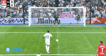 【比赛关键事件】 第49分钟,姆巴佩禁区右路强突下底急停扣球被克鲁兹追防铲倒,主裁果断判罚点球,姆巴佩亲自主罚命中,皇马1-0领先↓