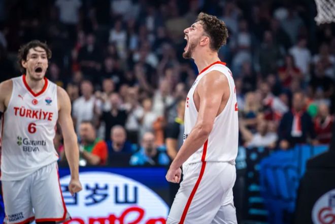 末节,拉金上篮得分,古杜里克打成2+1,约基奇抢断扣篮,奥斯曼尼、古杜里克互飙三分,约维奇抢断得分,塞尔维亚领先4分。申京补篮得分,黑泽尔三分命中,约基奇补篮也进,塞尔维亚还领先1分。关键时刻,申京造成约基奇犯规,两罚两中。最后20秒,申京完成关键抢断,激动怒吼。塞尔维亚只能采用犯规战术,拉金两罚两中,申京也两罚两中,最终土耳其击败塞尔维亚。 双方首发 土耳其:申京、拉金、奥斯曼、奥斯曼尼、西帕赫 塞尔维亚:约基奇、彼得鲁塞夫、约维奇、马林科维奇、阿夫拉莫维奇 |