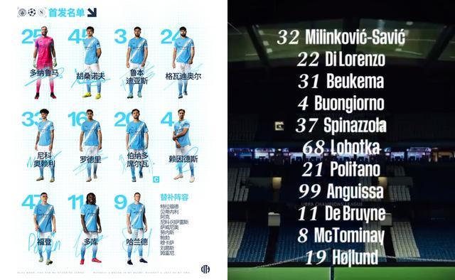 曼城 2-0 那不勒斯 新赛季开打后,曼城还未在英超步入佳境,而上赛季意甲冠军那不勒斯依旧高居联赛榜首,哈兰德、福登、B席此战对上了霍伊伦、麦克托米奈和德布劳内。 瓜迪奥拉对弈孔蒂,本场赛前的重要焦点,莫过于今夏告别曼城的德布劳内重返曼城主场!