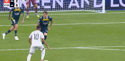新赛季前4轮皇马是唯一保持全胜的球队,今天坐镇伯纳乌球场对阵前4轮保持不败的西班牙人,皇马也是完全碾压对手。开场后皇马就展开猛烈攻势,第21分钟,皇马右路压上,连续传递转移到左侧,米利唐接巴尔韦德横传球,横向摆脱防守突然超远距离大力撩射,皮球直挂球门右侧死角,皇马1:0首开纪录。第33分钟,西班牙人左路反击造险,多兰突入禁区,库尔图瓦出击卡位失误被过掉,多兰倒三角回传,米利唐奋力将球挡出底线。