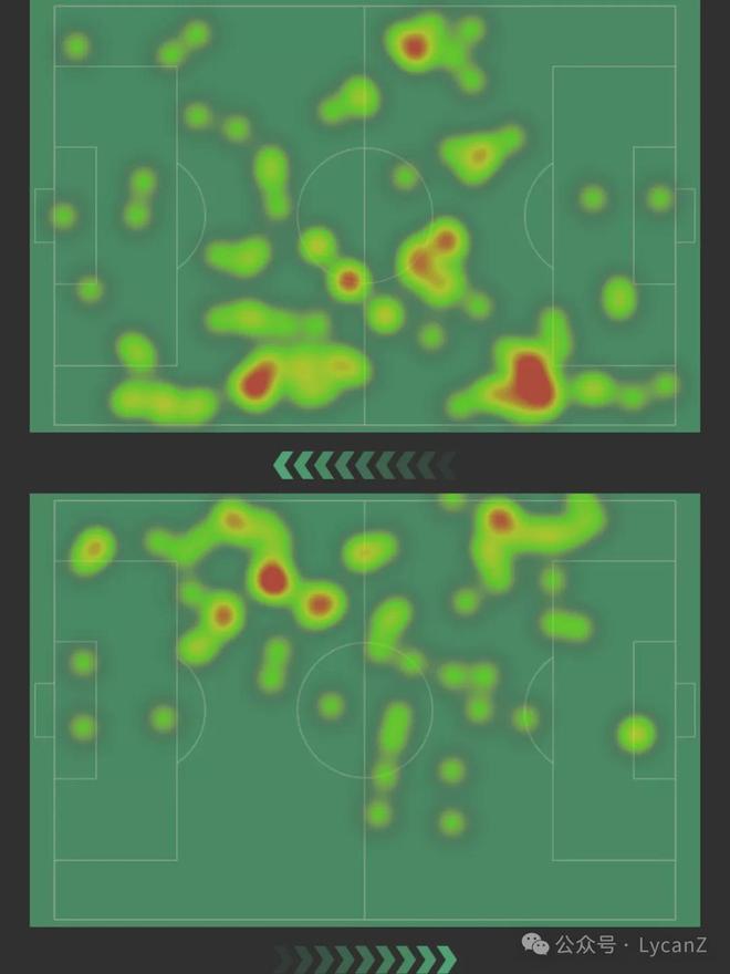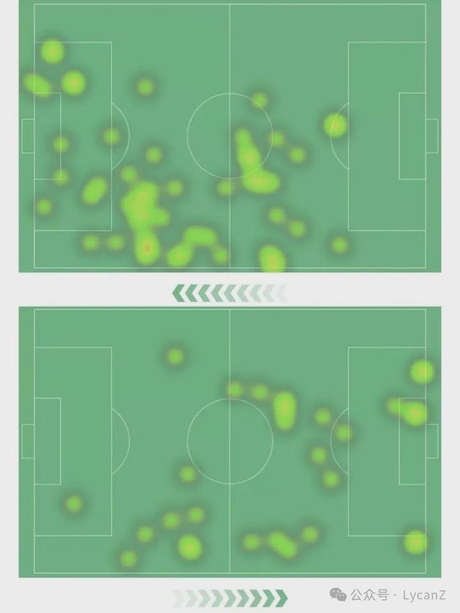 本场拉比奥特的活动范围(上)相比上一场(下)也有很大变化。